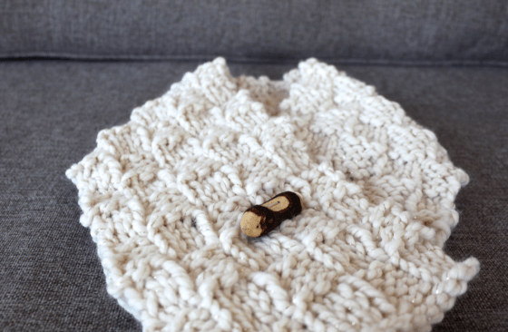 In December, my dad shared his hand-carved wooden buttons on Scissors & Sage.  I was so excited to use a button for a knitting project, so I quickly got to work!  I’ve been meaning to share this scarf for a few weeks now.  At long last, here it is!  It knit up quickly, as it’s big yarn and a relatively short scarf.  I used the basketweave stitch for my first time, and really like how soft and thick it makes the yarn feel.  Below is the tutorial.