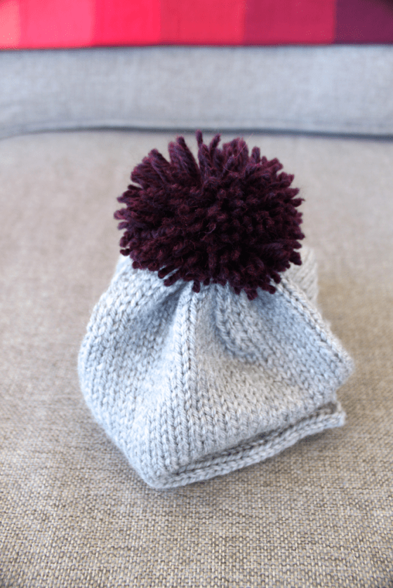 - Set your finished hat aside and make your pom-pom (learn how here)